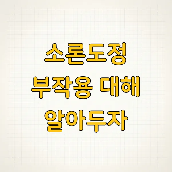 소론도정은 효과적인 약이지만, 위장 장애, 체중 변화, 혈당 상승, 기분 변화, 면역력 저하 등 주의해야 할 부작용이 있을 수 있습니다. 복용량과 기간을 전문가와 반드시 상의하고, 식단 관리와 생활 습관 개선, 감염 예방에 힘쓰는 것이 중요합니다. 만약 심각한 증상이 나타난다면 즉시 의료기관에 방문하세요.마무리하며, 알고 쓰는 약이 최고죠!