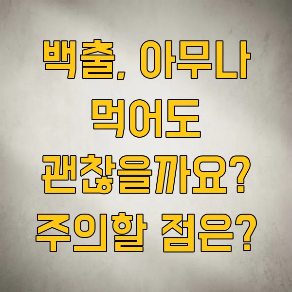 뭐든지 적당히 먹는 게 중요하잖아요? 백출도 마찬가지예요. 너무 많이 먹으면 오히려 소화불량이나 다른 불편함이 생길 수도 있거든요. 권장 섭취량을 지키는 것이 중요 합니다.
