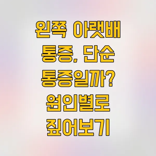 왼쪽 아랫배 통증은 과민성대장증후군, 변비, 장염 같은 소화기 문제부터 여성 질환, 신장 결석 등 다양한 원인이 있어요. 통증의 양상과 동반 증상을 잘 살피고, 심하거나 지속될 경우 꼭 전문가와 상담하세요.
